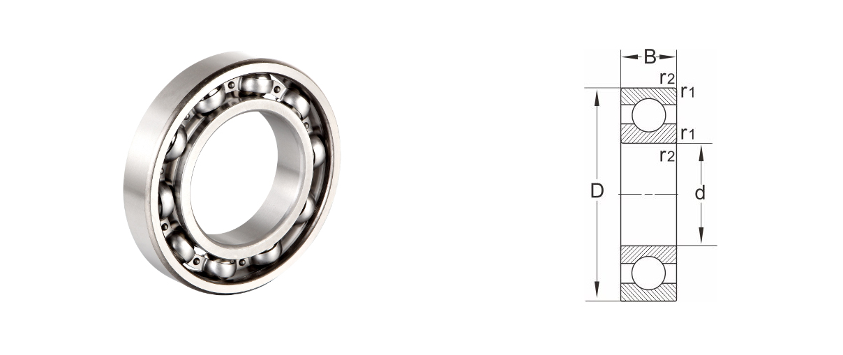 d | D | B | r1,r2 mín. | Carga dinámica Cr | Carga estática Cor | Lubricación con grasa | Lubricación con aceite | ||