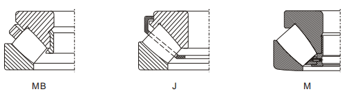 Los rodamientos de rodillos autoalineantes de tamaño pequeño y mediano pueden ser de jaula de cobre macizo (sufijo MB) o de acero estampado (sufijo J);